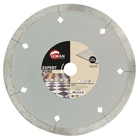 Dimensions : Diamètre 200 mm x Alésage 30/25,4/22,23 mm x Hauteur segment 10 mm x épaisseur 1,8 mm. Utilisation pour : Carrelage, faience, granit, pierre nat., marbre, grès cérame. Disque à jante lisse segmentée. Bonne tenue de coupe. Privilégier une coupe à eau pour grès cérame. Finition zéro éclat. Pour meuleuse à disque ou carrelette électrique. Normes EN13236 et OSA. Vitesse de rotation 7650 tr/mn. Léman est un spécialiste de l’outillage pour le Bâtiment, les métiers du Bois et du Métal, depuis 1976.