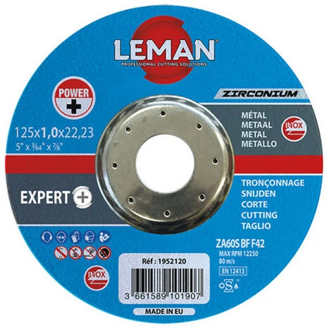 - Disque à tronçonner : 25 disques à tronçonner fin moyeu déporté zirconium D. 115 X 1,0 X 22,23 mm – Inox INDUSTRIE