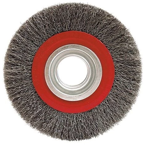 - Brosse pour machine : Brosse circulaire fil acier ondulé pour touret 0,30 mm D. 150 mm Al. 16/20/25 mm Ep.20 mm métal – Décapage dur – 410.150 – Leman