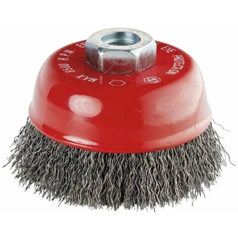 Pensez à vous protéger les yeux et les mains quand vous utilisez cette brossesur votre disqueuse meuleuse.Brosse conique de 80 mm de diamètre.Vitesse rotation maxi: 8500 tr/min