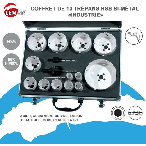 Leman – Coffret de 13 trépans bi-métal avec 2 mandrins + 3 forets