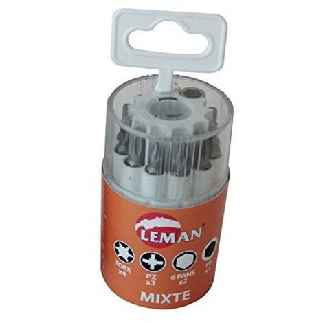 Leman – Coffret de 9 Embouts de vissage PZ/Torx/Hexagonal avec porte-embout – REF.MIXTE