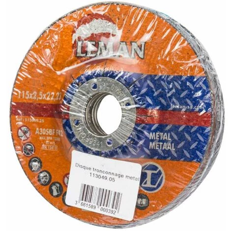 Disques fer pour meuleuse. Alésage 22,23 mm.Rotation max: 13300 tr/min. Avance max: 80m/s.Epaisseur 2,5mm.