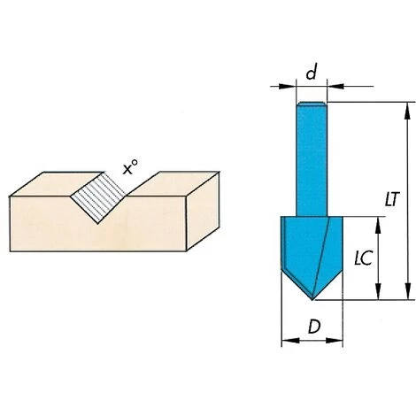 Fraises de défonceuses pour profils spéciauxFraise de défonceuse carbure rainure en V à 90deg.