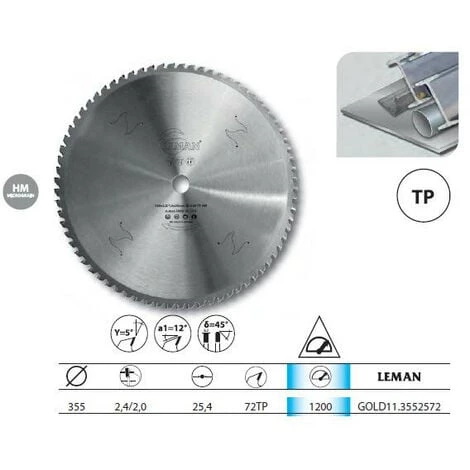 Leman – Lame carbure micro-grain 355×25.4x72z TP pour métaux – GOLD11.3552572