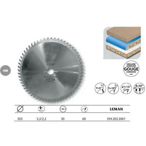 Leman – Lame carbure de finition mise à format 303x30x60 gouge / panneaux – 354.303.3061