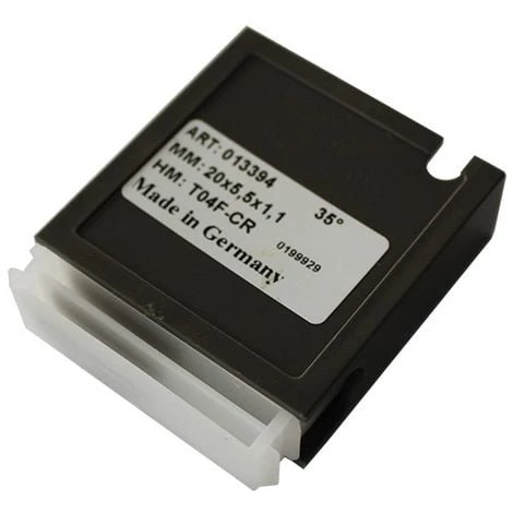 - Plaquette pour porte-outils : Lot de 10 mini plaquettes carbure avec rainure sur petite face – 35° KO5 20×4,5×1,1 mm 4 coupes pour bois – 02.2276.4 – Leman