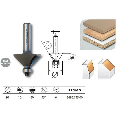 Leman – Mèche à chanfreiner 45° long. 60 diam. 30 q.6 + guide – 5686.745.00