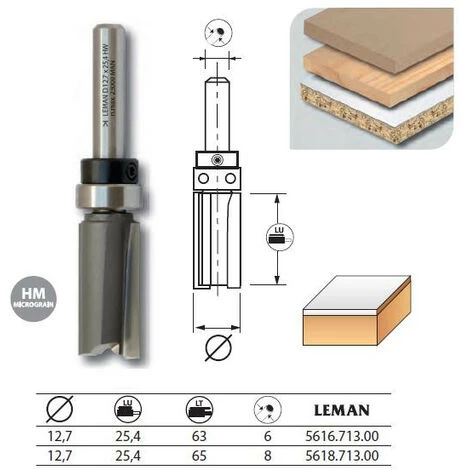 Leman – Mèche d’affleureuse droite diam. 12,7 long. 65 q.8 + guide supérieur – 5618.713.00
