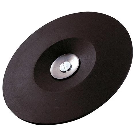 Plateau caoutchouc sur tige pour disque fibre – D. 115 mm x Q. 6 mm. EN 13743. 3250 tr/min. Plateau caoutchouc tige Ø 6 mm avec flasque de serrage, pour fixation sur mandrin de perceuse.
